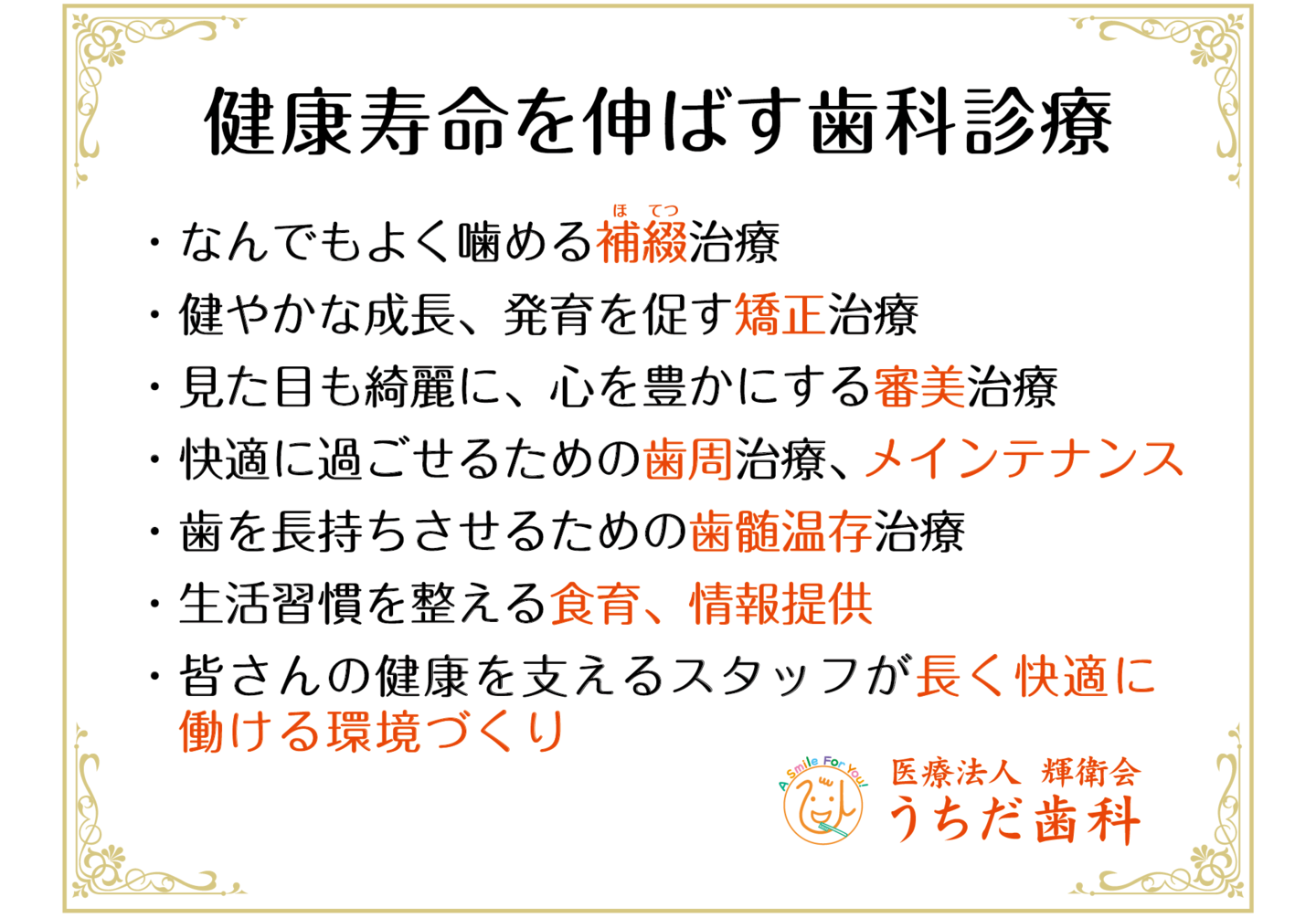「健康寿命を伸ばす歯科診療」を診療理念としています。