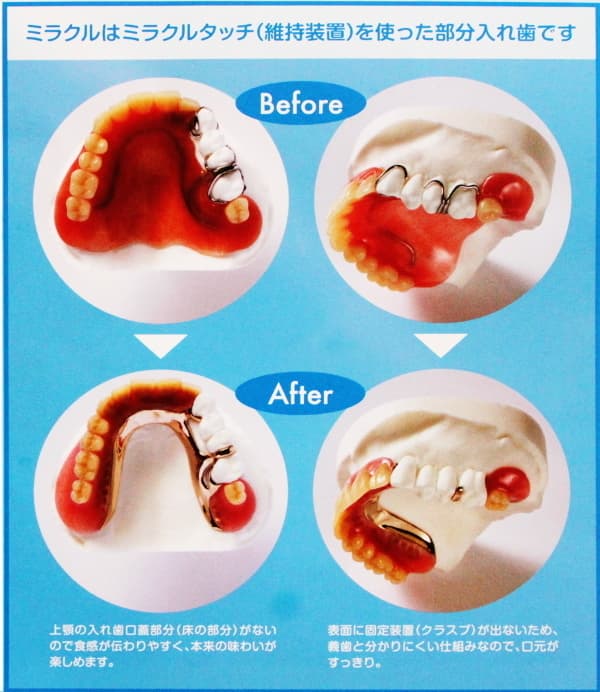 • ミラクルは多様性があるんで、従来の義歯よりも修理を行いやすい