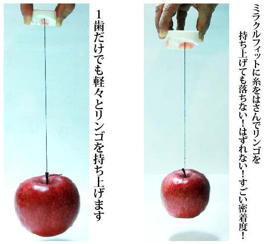 ②歯と入れ歯の隙間は縫い糸(直径0.1mm以下)すら抜けないほどの密着力。ごま煎餅だって怖くない!!