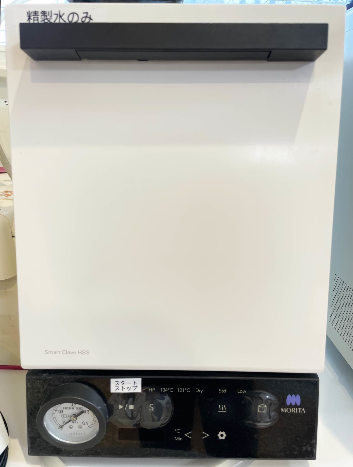 お口の中に使う器具を滅菌する機械です。